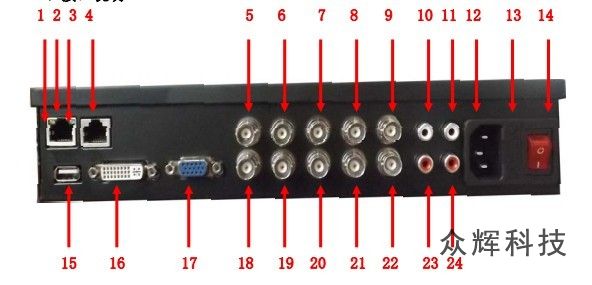 19 | SOG信號/SDI選擇性輸入,內(nèi)置SDI板卡時此口可為SDI輸入。(可選) |