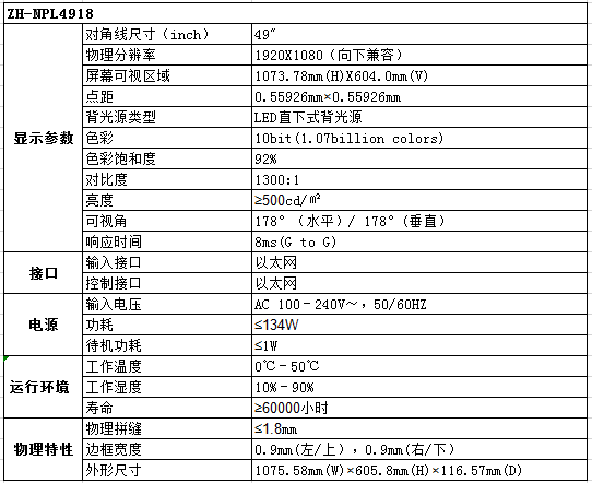 ZH-NPH4918  LG49寸1.8mm拼縫