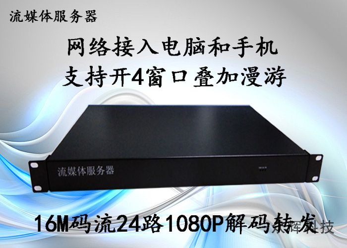 純硬件架構——隨時斷電,安全標準1U機箱支持開4窗口漫游疊加16M碼流24路1080P解碼轉發網絡接入電腦和手機