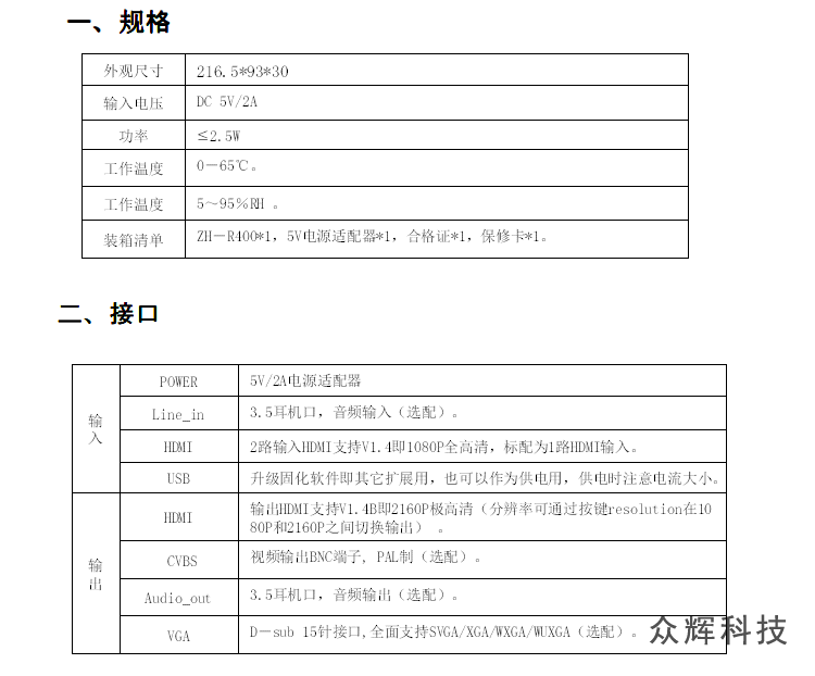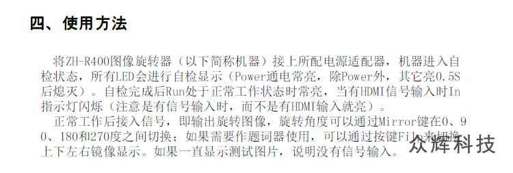 此款為ZH-R100的升級高端版本ZH-R400,此版本為全新發售,Linux嵌入式系統,支持NPU,全按鍵操作,自動記憶,自帶測試底圖,沒有信號接入時也可以調試,輸出分辨率可以設置為1080P和2160P。支持上下左右鏡像,可做為題詞器使用。彌補之前版本分辨率低,顯示文字不清楚的問題,如果對顯示要求不高,價絡敏感的用戶也可以選擇ZH-R100 如果有更高要求,也可以選擇ZH-R500,4K輸入和4K輸出版本,如果喜歡安卓系統可以選擇ZH-R300